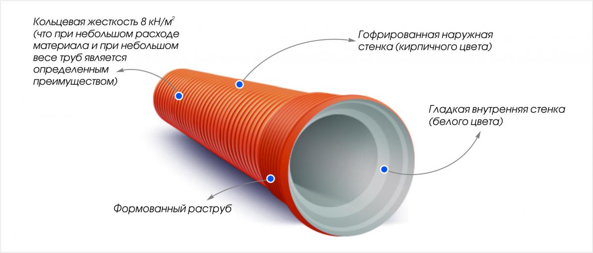 • Тип: двухслойные раструбные трубы со структурированной стенкой.